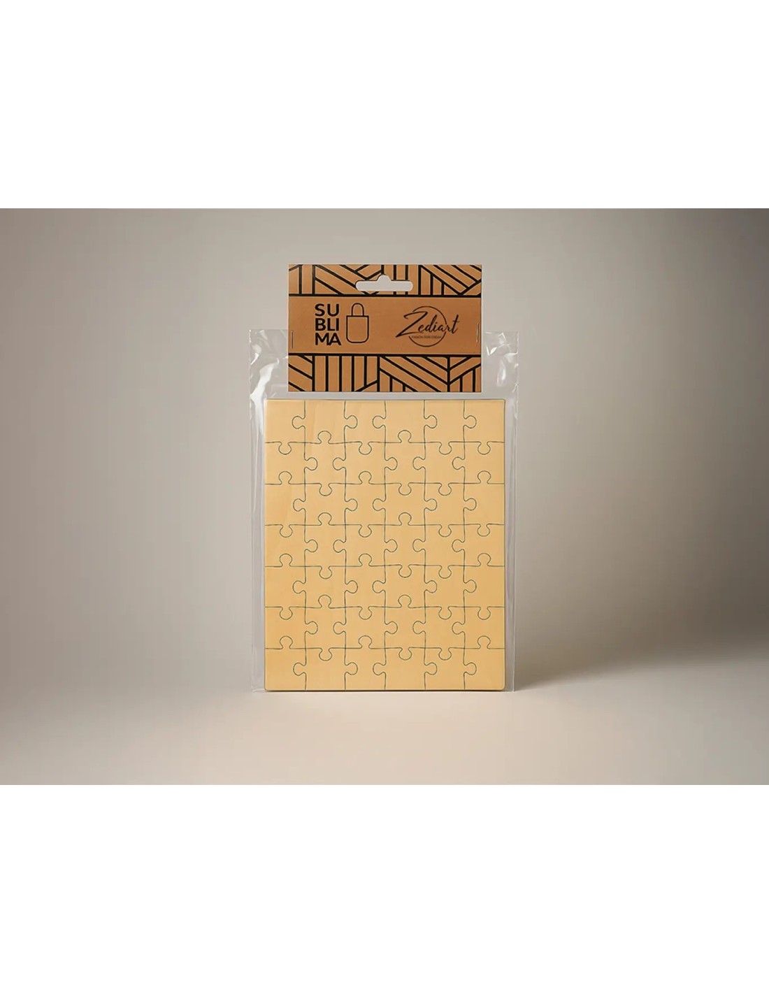 Puzle de 60 piezas de madera natural, apto para sublimación. Su tamaño es de 24 x 17.5cm. Compatible con prensas de calor planas hasta 200 grados. El tiempo recomendado de planchado entre 50 y 60 segundos.
