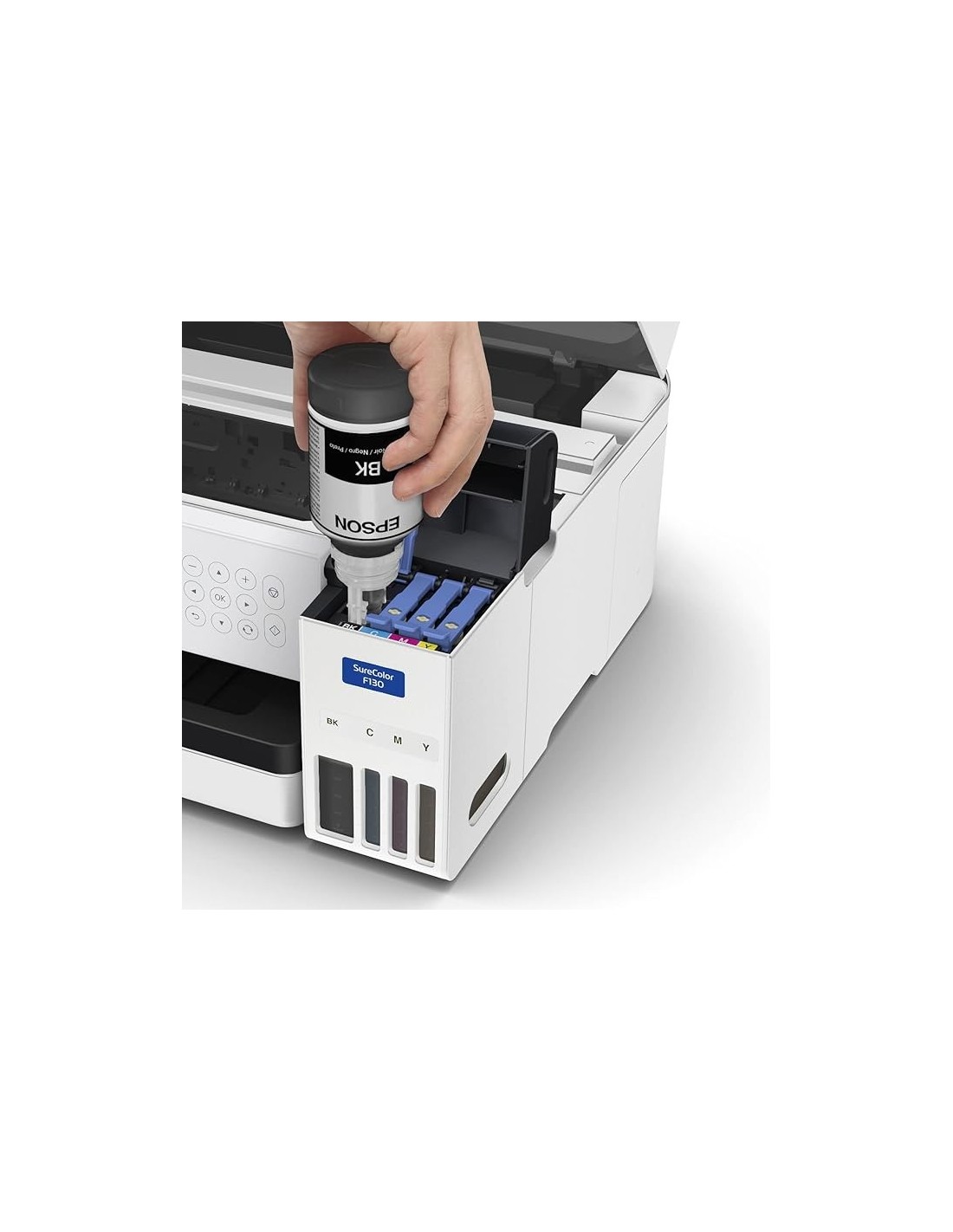 Impresora para sublimación A4, SCF100, para pequeño formato. Fácil de usar e instalar, sin necesidad de conocimientos previos ni uso de herramientas. Cabezal Epson precisoncore micro TPF y pantalla LCD de 2.4. Depósitos rellenables con tinta de sublimación en botellas de 140 ml. Garantía Epson.