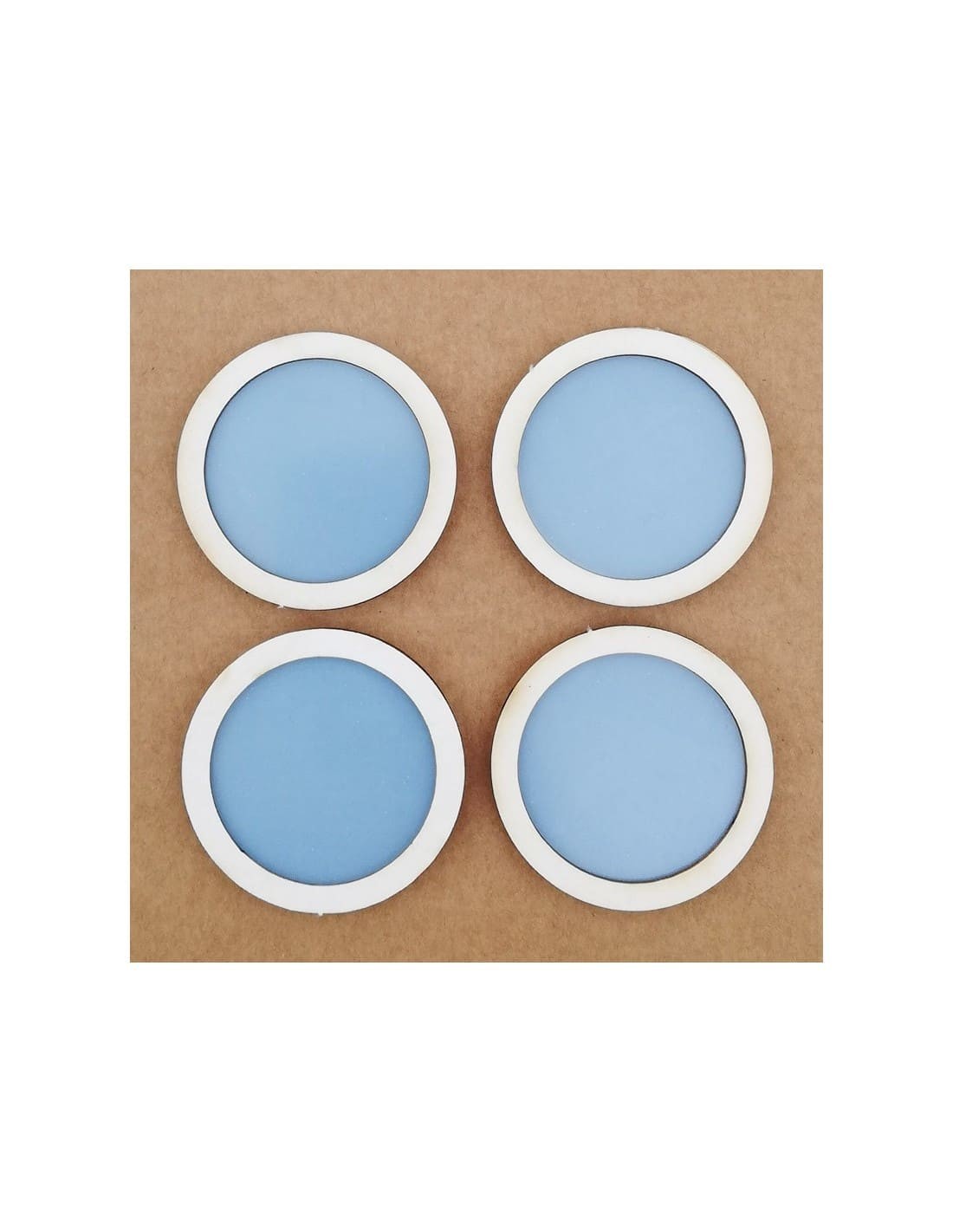Set 4 piezas de contrachapado de 4mm de grosor, 4 piezas de acetato de 0,5mm de grosor, y 4 piezas de chipboard de 1,5mm de grosor. Tamaño circulos 5 cm.